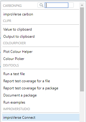 Figure 1: Launch the improVerse Connect addin from the RStudio Addins menu