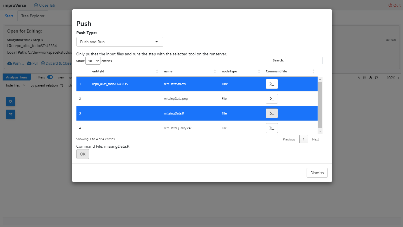 Figure 11: Select “Push and Run” to upload files and execute the step
